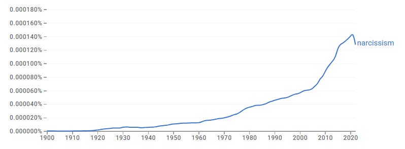 Obviously people are prone to abusing this sort of language more than using it, but even within actual psychiatry the word has become somewhat meaningless. I would argue that “Narcissism” has come to be defined with specific reference to the characteristics of Narcissistic Personality Disorder, which means the term itself is self-referential. In other words, with “Antisocial personality disorder”, “antisocial” has a meaning outside of the context of the DSM. If the “N” in the NPD is itself referring to NPD, then “narcissistic personality disorder” really means “narcissistic personality disorder personality disorder” and so on.