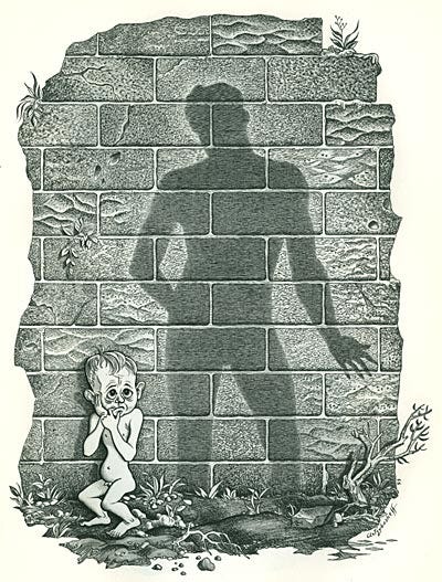 And so the baby is consumed with rage at this importuner, it's balling up its little fists. But it also creates an opportunity. Clearly the thing has… something the mother wants. And if it had that… something then maybe the mother would want the kid again?